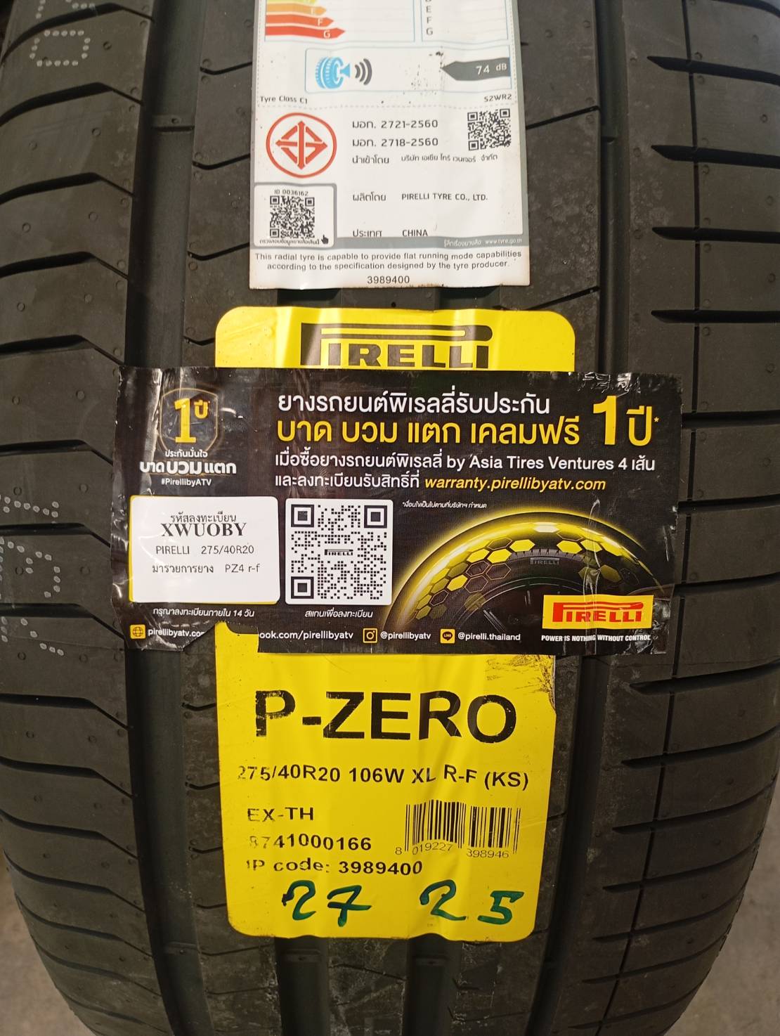 ยางรถยนต์ PIRELLI 2025 รุ่น P-ZERO ขนาด 275/40R20 Y25